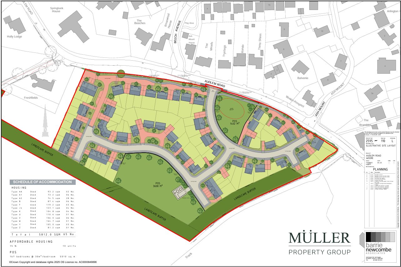 Outline Planning Application received for 65 dwellings off Audlem Road.